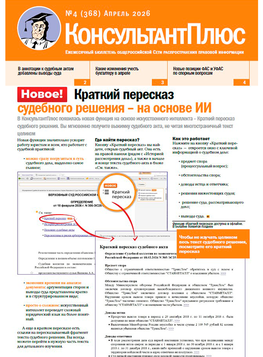 Ежемесячный журнал для пользователей КонсультантПлюс с новостями компании, информацией о новшествах в системе и практической информацией для специалистов